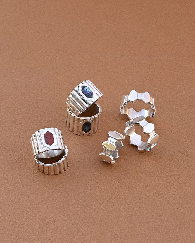 Of Indira's materials 70% of its precious raw silver and gold are recycled. Resin, and any artificial stones are rejected during the design process to continue to foster and hold the brand accountable to working with resources that come directly from the Earth.